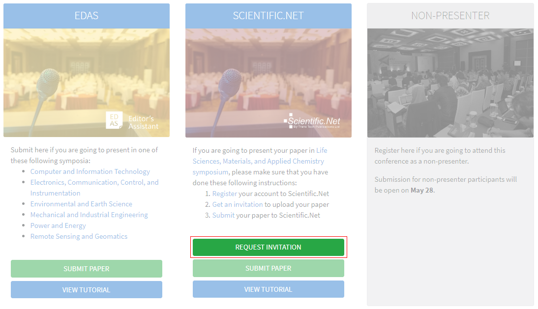 Get your invitation by clicking the Request invitation button under the Scientific.Net