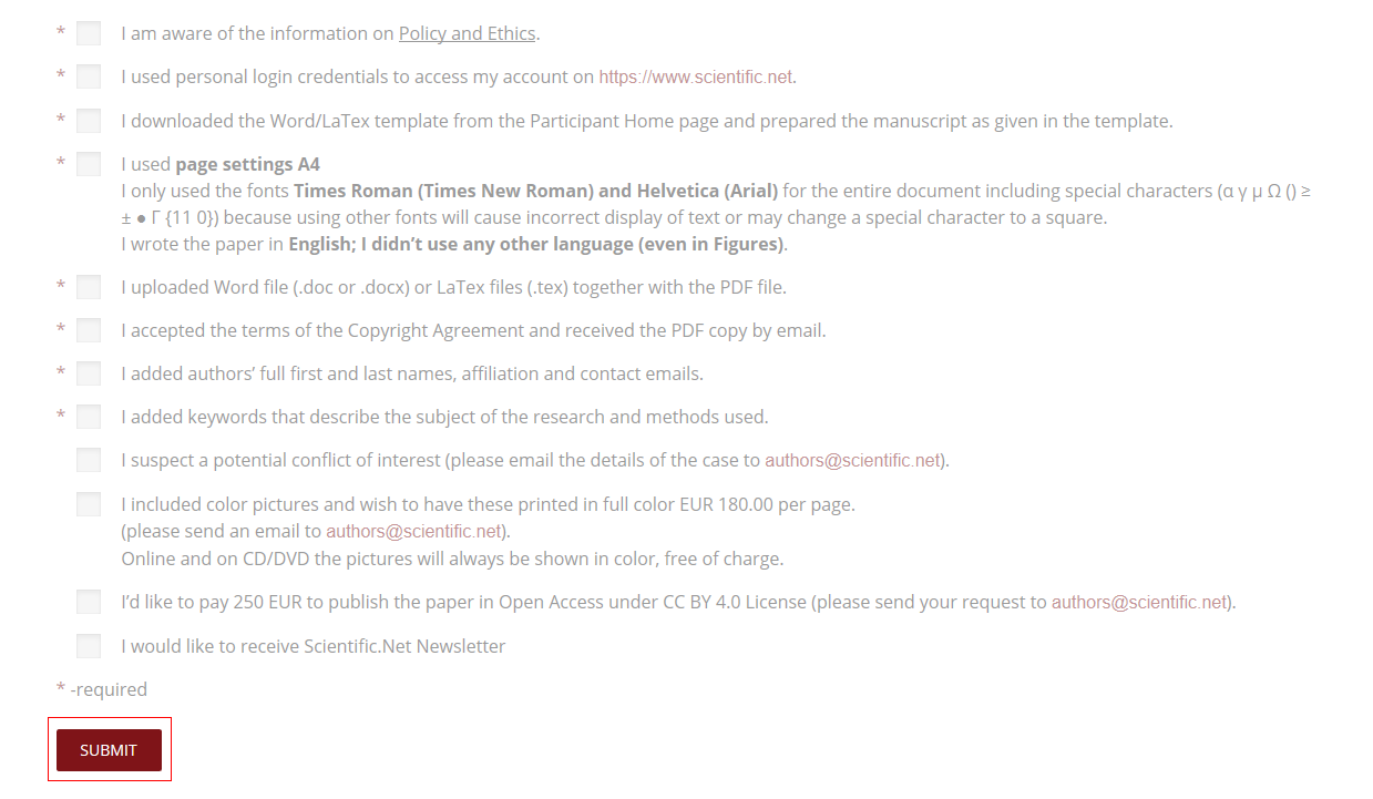 Then, click the Submit paper button under the Scientific.Net card, which will redirect you to