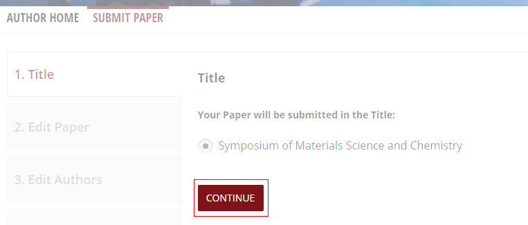 Select radio button on "Symposium of Materials Sciences and Chemistry" and click Continue.