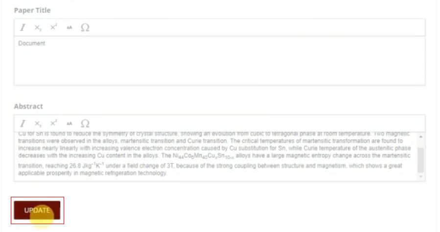 Type your paper title and abstract, then click Update.